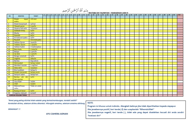 Mutaba Ah Yaumiyah Amalan Harian Selama Ramadhan Pdf